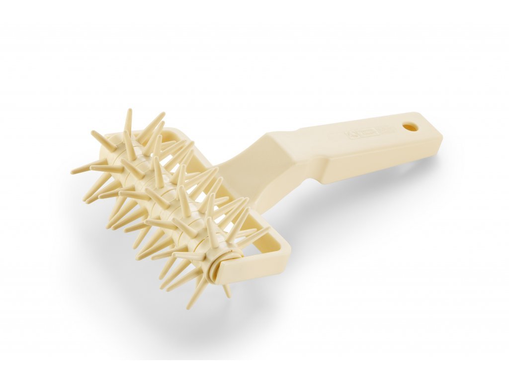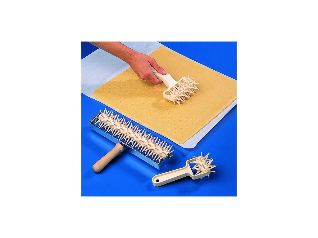 Váleček je vhodný pro vytvoření vzoru s dirkami. Díky pouhému jednomu přejetí válečkem po těstě dostanete krásnou a rovnoměrnou dirky. Ozdobené těsto poté můžete využít jako ozdobnou vrstvu na pečivo.