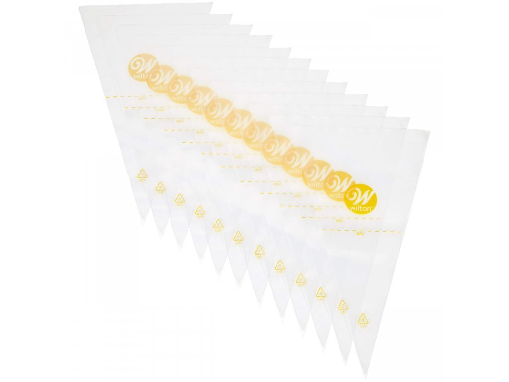 Jednorázové zdobicí sáčky Wilton jsou vyrobeny ze silného a pružného plastu. Díky tomu jsou skvělé pro práci s krémem, ale také královskou a krémovou polevou. Můžete také použít zdobicí sáčky k tavení cukrovinek v mikrovlnné troubě.