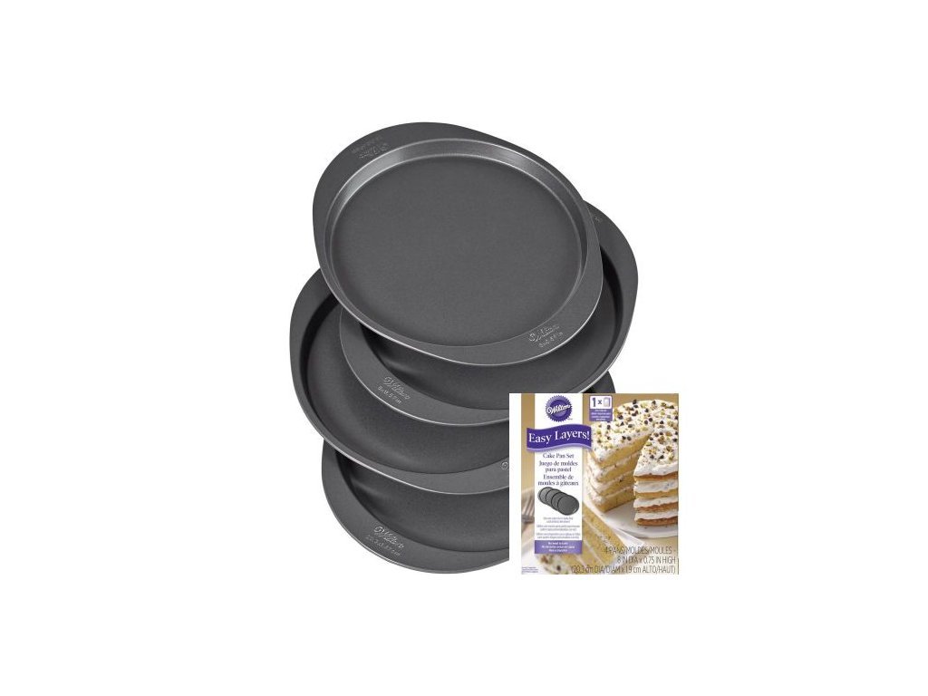 Udělejte krásné vícevrstvé dorty s touto péčí sadou Wilton. Dorty s různými odstíny jedné barvy, duhové dorty, nahé dorty, klasické dorty a mnoho dalšího. Tyto plechy na pečení usnadňují vytváření moderních dortů s více vrstvami.